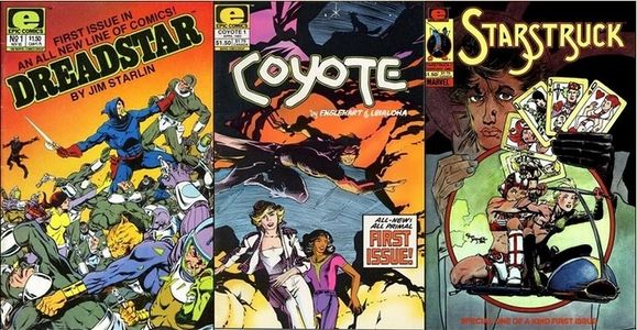 Epic Comics (1982-1994) was an imprint of Marvel comics that allowed creators to retain control and ownership of their creations. It spun off from the Epic Illustrated magazine into it's own line, sold only via the direct market, starting with Jim Starlin's Dreadstar in 1982 and soon expanded to contain many more popular titles including Elaine Lee's Starstruck, Steve Englehart's Coyote, and Carl Potts' Alien Legion, to name only a few. The Epic imprint was responsible for making quite a few Marvel fans expand their tastes in comics beyond the super-hero genre and may have done as much to foster the growth of independent books, by providing a large number of willing fans eager for more and different comics, as any other single factor in the early 1980s. In time, the Epic line skewed back towards the costumed characters and ended up being a place for Marvel to publish more mature versions of standard Marvel super-hero stories, but the key role it played in the early days of independent and creator-owned comics paved the way for many companies that followed who allowed creators a publishing home while retaining ownership of their intellectual property.