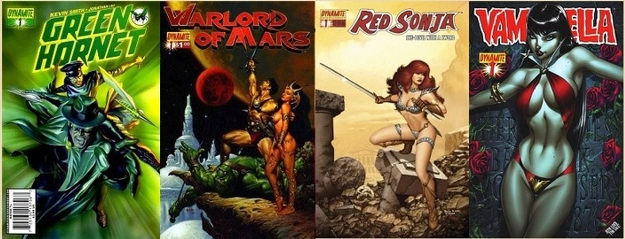 Dynamite was founded in 2005 and primarily publishes comic series based on TV shows and movies (Army of Darkness, Battlestar Galactica, Terminator, Robocop, Xena), licensed characters and characters from literary fiction (Green Hornet, The Shadow, The Spider, Vampirella, Red Sonja, John Carter, Sherlock Holmes, The Lone Ranger, Zorro, Tarzan). Dynamite picked up Garth Ennis' series The Boys after it was dropped by DC/Wildstorm in 2007 and has published a number of other series in conjunction with Ennis in the years since. A more complete history of Dynamite is available on Wikipedia.