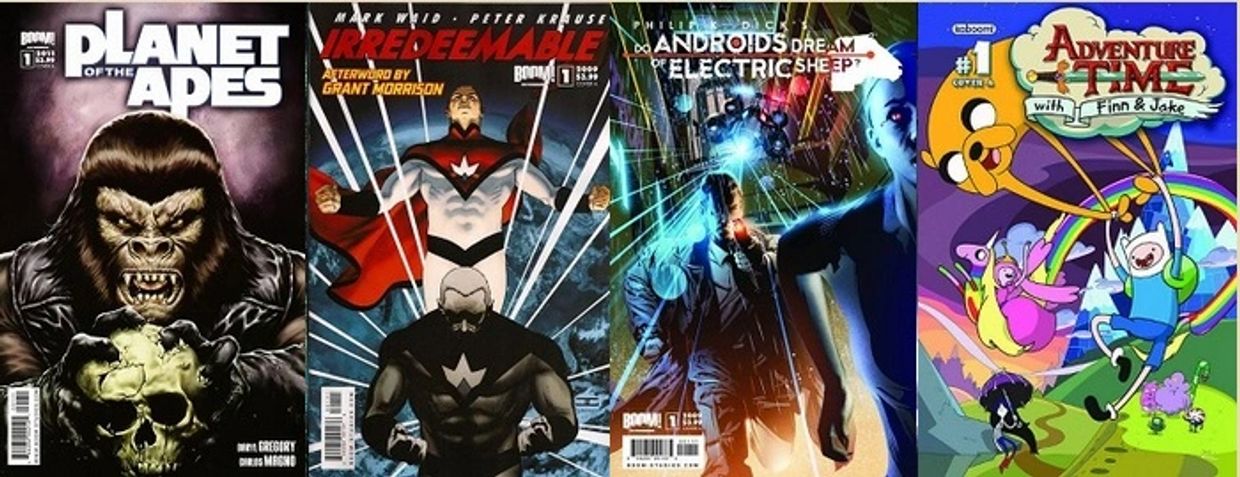 BOOM! was founded in 2005 and has brought many action, fantasy, horror, sci-fi, and super-hero to their fans over the years. They've had a number of original series as well as series related to HP Lovecraft's Cthulhu mythos and licensed series for Cliver Barker's Hellraiser, the Planet of the Apes movies, 28 Days Later, Michael Moorcock's Elric, Eureka, Farscape, and an unabridged comics adaptation of Philip K. Dick's Do Androids Dream of Electric Sheep. BOOM! publishes all ages books under their kaBOOM! imprint including comics based on Charles Schulz's Peanuts, Adventure Time, The Regular Show, as well as original content. In 2013 BOOM! started the BOOM! Box label for their more avant-garde comics, as well as buying and absorbing the small publisher Archaia, which is famous for publishing the series Mouse Guard and now operates as an imprint of BOOM!. A more complete history of BOOM! is available on Wikipedia.