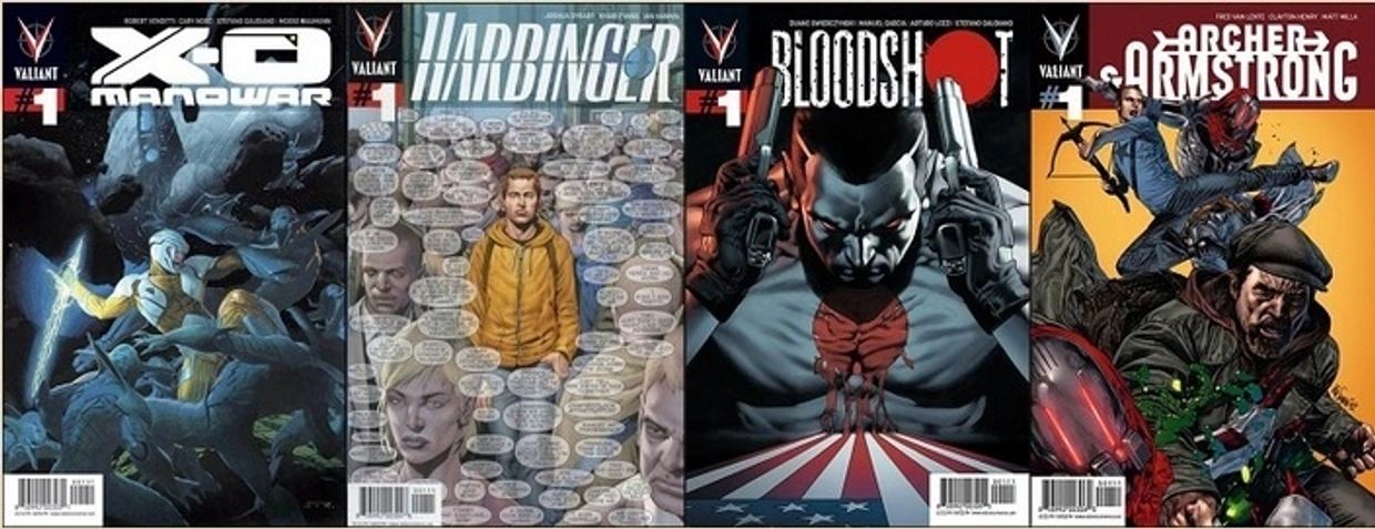 The current Valiant re-started in 2007 when they acquired the assets of the original Valiant Comics (with the exception of Magnus, Solar, and Turok which reverted to Random House). The new comics began coming out in 2012 with the relaunch of XO Manowar, soon joined by Harbinger, Bloodshot, Archer & Armstrong and Shadowman. A more complete history of Valiant is available on Wikipedia.