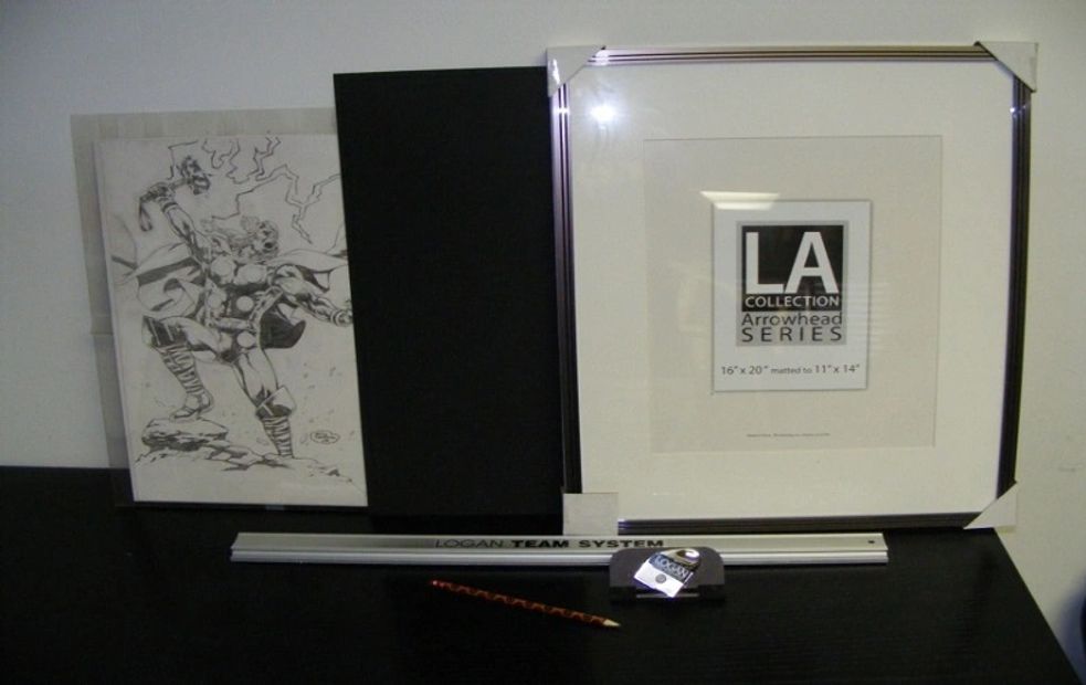 I tend to collect art in the size that professional use for comic book art - 11x17. In my example I will be framing a Thor sketch by Bing Cansino. Here's what you will need:
