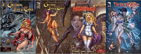 Zenescope started in 2005 and primarily publishes comics that are takes on classic fantasy/fairy tale characters with the main protagonists generally being a very sexy female. They rarely publish a comic without making multiple variant covers with sexy females in varying states of undress. Their main franchise is Grimm Fairy Tales. They have also done comics putting a sexy twist on other public domain characters and settings like Wonderland, Neverland, and Robyn Hood (taking the Robin Hood character into a modern setting and, of course, making the title character a sexy female).