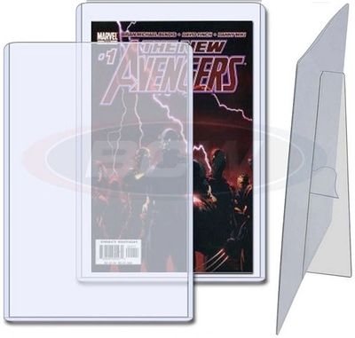 These are rigid plastic sleeves that you slide a bagged/boarded comic into for additional protection. These are made of PVC and are not archival (like Mylar). I don’t see the usefulness of these for general comics in your collection. People usually bag and board a comic and put it in a box, they’re not tossing it around where they need this kind of extra protection. They could be useful if you’re shipping a comic in the mail and want the extra protection. BCW sells some of these with little stands built in that are kind of cool as a cheap alternative to a frame if you want a quick display for some of your comics.