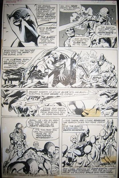 Sample page with lettering: Jungle Action #9 page 16 - 1974 (pencils: Gil Kane inks: Klaus Janson letters: Tom Orzechowski) - This is a good example as you can see where a couple of the word balloons have come off, you can see the art underneath discolored from the glue that was used to affix the word balloons to the art.